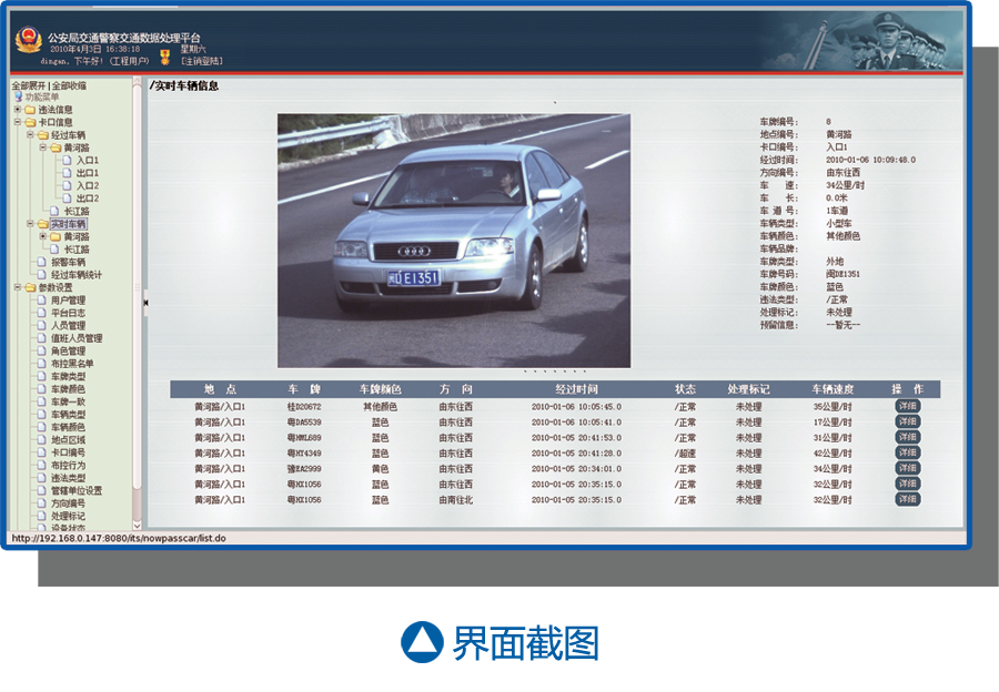 DA-931后平臺數(shù)據(jù)管理系統(tǒng)采用B/S結(jié)構(gòu),通過WEB方式登陸訪問,采用一般瀏覽器作為客戶端,無需進(jìn)行客戶端維護(hù),支持通過網(wǎng)絡(luò)進(jìn)行遠(yuǎn)程訪問。系統(tǒng)以性能穩(wěn)定、人性化為設(shè)計(jì)原則,系統(tǒng)人機(jī)界面和諧,操作簡單快捷,大大提高對數(shù)據(jù)的處理效率。作為開放、統(tǒng)一的的用戶平臺,DA-931后平臺數(shù)據(jù)管理系統(tǒng)支持公路車輛智能監(jiān)測記錄系統(tǒng)(卡口系統(tǒng))、闖紅燈自動記錄系統(tǒng)、區(qū)間測速系統(tǒng)等系統(tǒng)。公路車輛智能監(jiān)測記錄系統(tǒng)(卡口系統(tǒng))過往車輛數(shù)據(jù)管理模塊對每個卡口點(diǎn)傳回的車輛信息數(shù)據(jù)進(jìn)行統(tǒng)一存儲,并提供過往車輛信息的查詢調(diào)看、車流量統(tǒng)計(jì)、嫌疑車輛的布控等服務(wù)。闖紅燈自動記錄系統(tǒng)違法車輛數(shù)據(jù)管理模塊負(fù)責(zé)對每個前段路口傳回的違法照片進(jìn)行分類入庫,并通過人工 篩選有效違法證據(jù)照片進(jìn)行處理打印罰單。系統(tǒng)也提供違法數(shù)據(jù)的查詢和違法流量的統(tǒng)計(jì)。區(qū)間測速系統(tǒng)過往車輛及違法車輛數(shù)據(jù)管理模塊除了對前端測速點(diǎn)過往車輛信息的記錄,還提供對超速數(shù)據(jù)的自動分離和存儲,通過人工確認(rèn)有效違法數(shù)據(jù)進(jìn)行處理打印罰單。系統(tǒng)也提供違法數(shù)據(jù)的查詢和違法流量的統(tǒng)計(jì)。